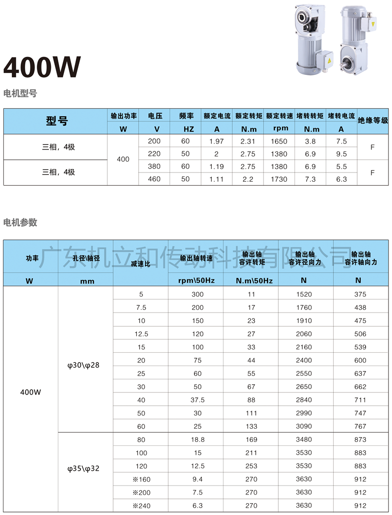 F3准双曲面减速电机400W